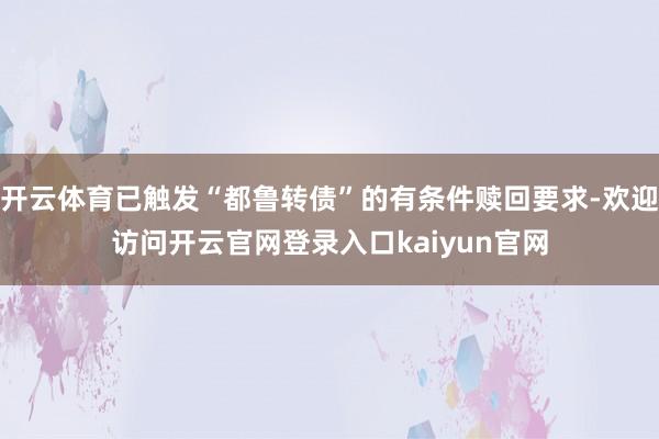 开云体育已触发“都鲁转债”的有条件赎回要求-欢迎访问开云官网登录入口kaiyun官网
